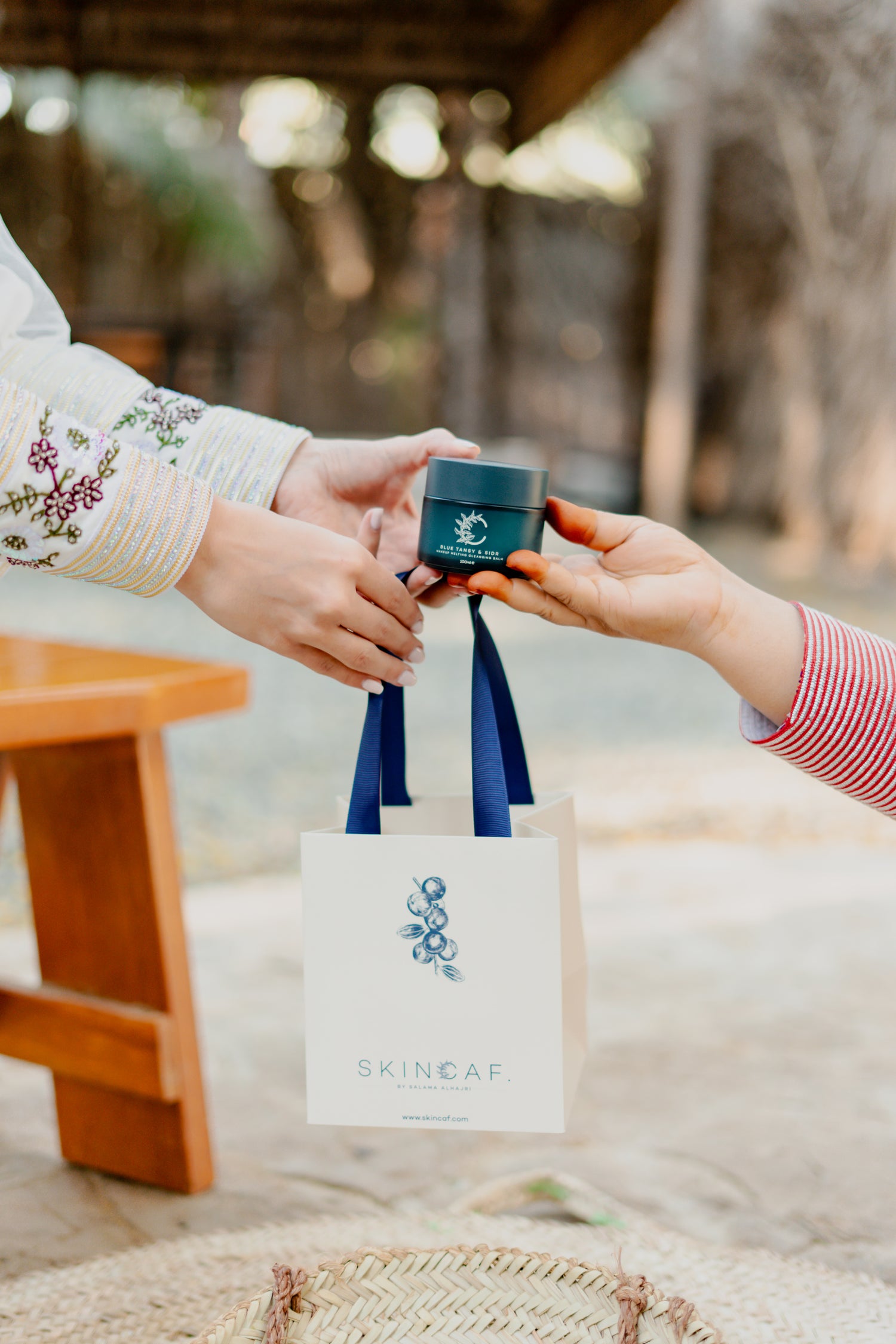 Skincaf emerged from a journey of discovery, experimentation, and a deeper rooted connection to nature. From creating coffee scrubs at home to studying beauty science, Salama sough to create a skincare line that aligns with her values of authenticity, quality and sustainability. Inspired by the UAE's heritage Skincaf brings together natural beauty practices and local ingredients including Sidr Oil known for it's healing properties. This foundation of Emirati values and respect for nature is woven into every product.